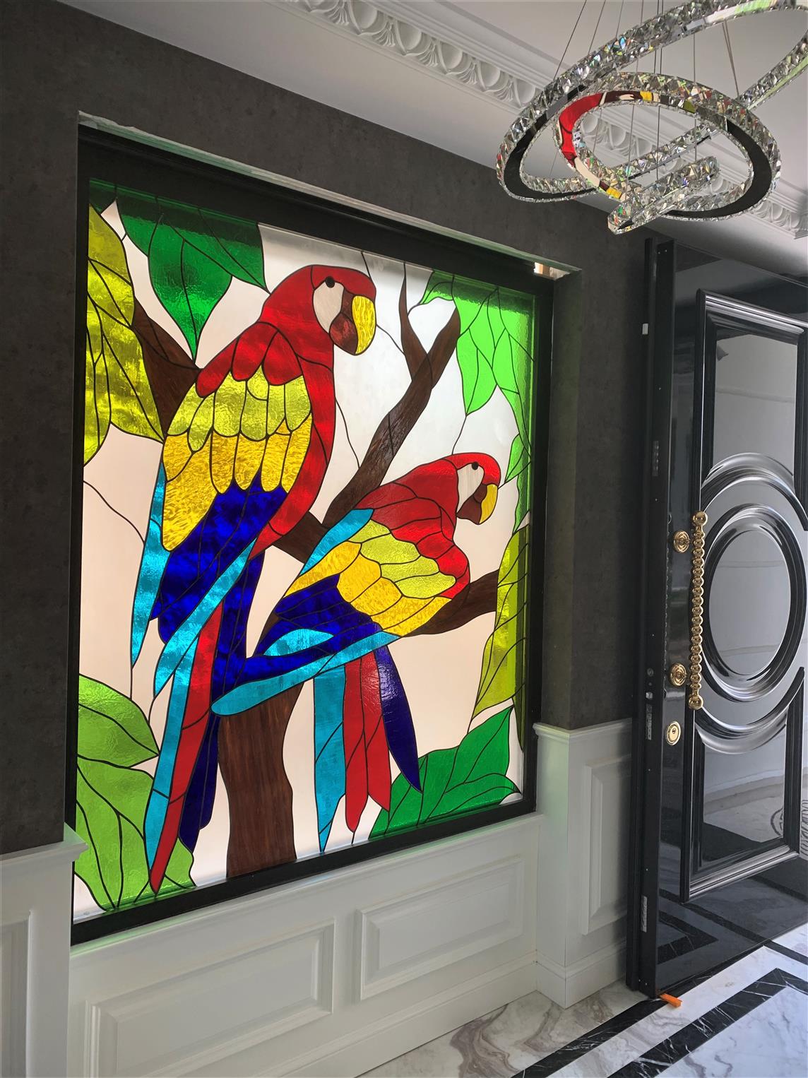 Villa pencerelerine tiffany vitray uygulaması ,renkli camlar katedral cam ,opak cam ,buzlu cam serileri ile oluşan vitray tasarımları