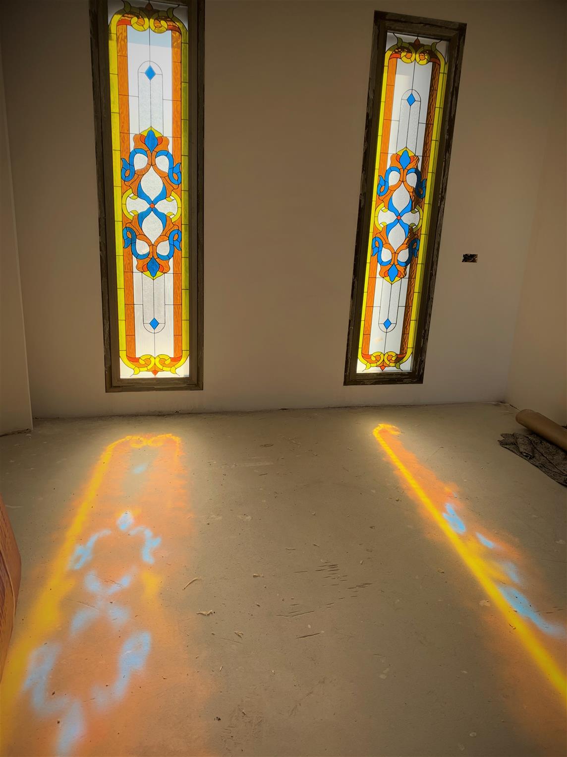 Villa pencerelerine tiffany vitray uygulaması ,renkli camlar katedral cam ,opak cam ,buzlu cam serileri ile oluşan vitray tasarımları ve tavan kubbe vitray çalışması.