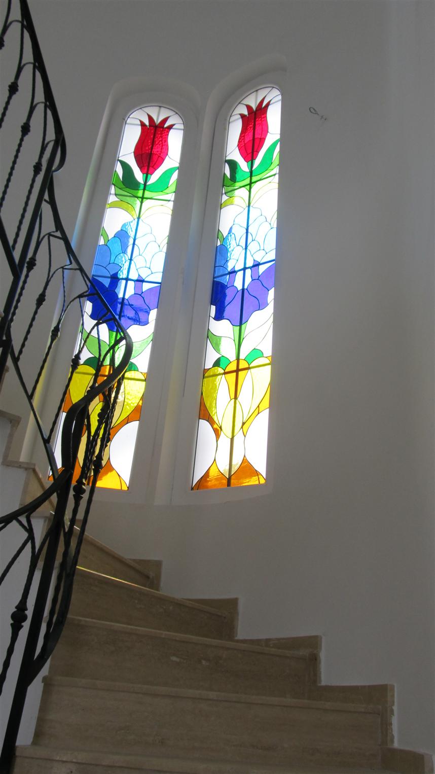 İzmir Çeşme Alaçatıda Serpil Hanımın Taş Evi'ne uygulanan renkli cam , pencere vitray çalışması.